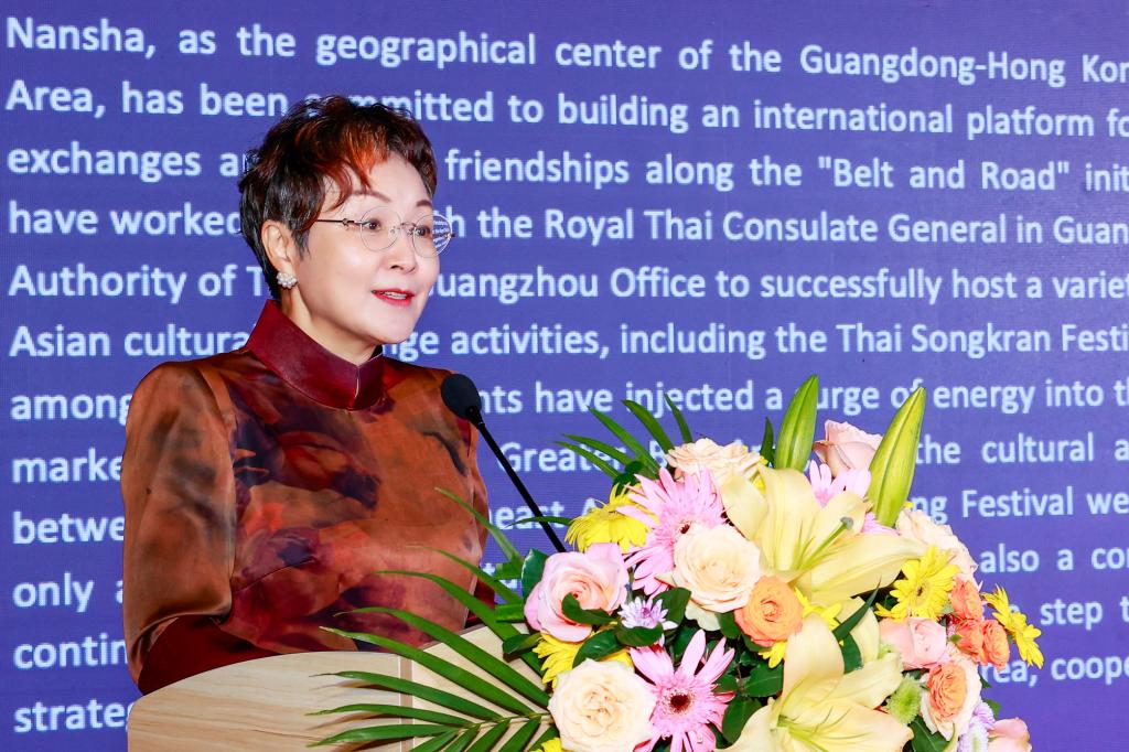 开幕式上,鲁辉表示,南沙作为粤港澳大湾区几何中心,一直致力于搭建国际文旅交流平台,共筑“一带一路”友谊桥梁,南沙区与泰王国驻广州总领事馆及泰国国家旅游局广州办事处之间自2019年开始紧密合作。2023年后,联合我校东南亚学院成功举办了多场丰富多彩的东南亚文化交流活动,为南沙、粤港澳大湾区、中国与东南亚的文旅市场注入澎湃动能。此次的水灯节,不仅是一场国际文旅盛事,亦是实践《南沙方案》,推动“立足湾区、协同港澳、面向世界”战略性平台建设的具体措施。