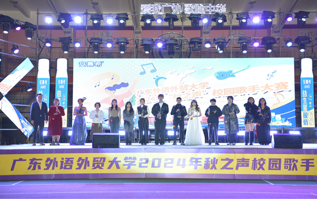 本网讯 为迎接学校60周年校庆倒计时一周年的到来,11月22日晚,由校团委、校庆工作办公室主办、校学生艺术团办公室承办的广东外语外贸大学“爱我广外·歌咏中华”2024年秋之声校园歌手大赛在白云山校区大操场举行。校党委副书记唐锐,党委宣传部、校团委、保卫部等单位相关负责人,全场三四千名广外学子共聚一堂,一齐唱响“青春广外”的激昂旋律。