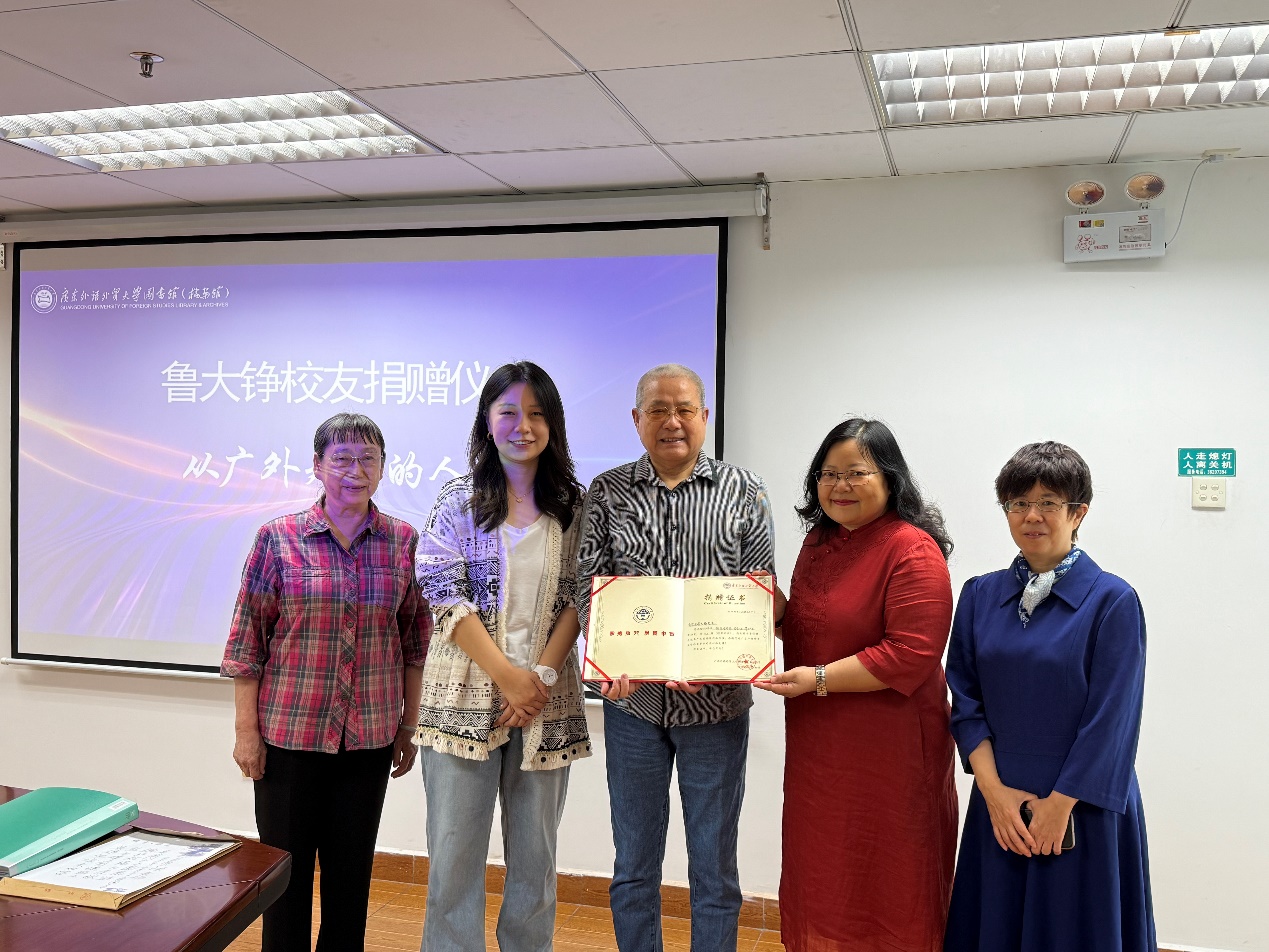 本网讯 为迎接建校60周年,图书馆(档案馆)特面向全校师生员工、海内外校友以及关心支持学校建设与发展的校内外各界人士征集校史资料。5月30日上午,广外第一届学生、65级校友鲁大铮向图书馆(档案馆)捐赠包括1965级准考证、学生证、毕业证等在内的个人档案112件。捐赠仪式在我校白云山校区图书馆(档案馆)四楼会议室举行。出席捐赠仪式的有65级校友鲁大铮、梅卫争伉俪,图书馆(档案馆)馆长陈红霞、校友事务与合作发展处副处长(主持工作)刘庆丹等相关人员。