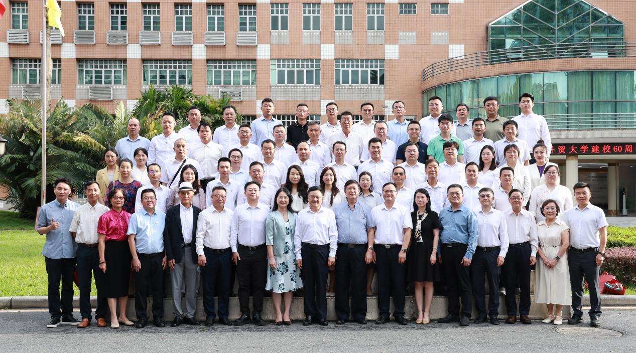 本网讯 9月21日下午,“六秩芳华、同心筑梦”广外60周年校庆倒计时两个月暨第二批集体捐赠仪式在广东外语外贸大学白云山校区行政楼国际会议厅圆满举办。校党委书记石佑启,副校长刘建达,校党委常委、副校长谢伟光,捐赠企业代表与校友70余人出席会议。