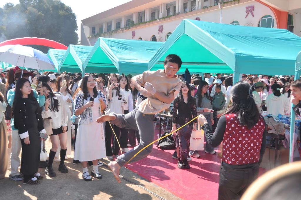 歌声同样打动人心。多国留学生组成的乐队带来《音乐之桥》,以旋律跨越语言,搭建起情感交融的文化桥梁。他们演绎的粤语金曲《海阔天空》引发全场大合唱,音符跃动间,文化在传递,友谊在升华。