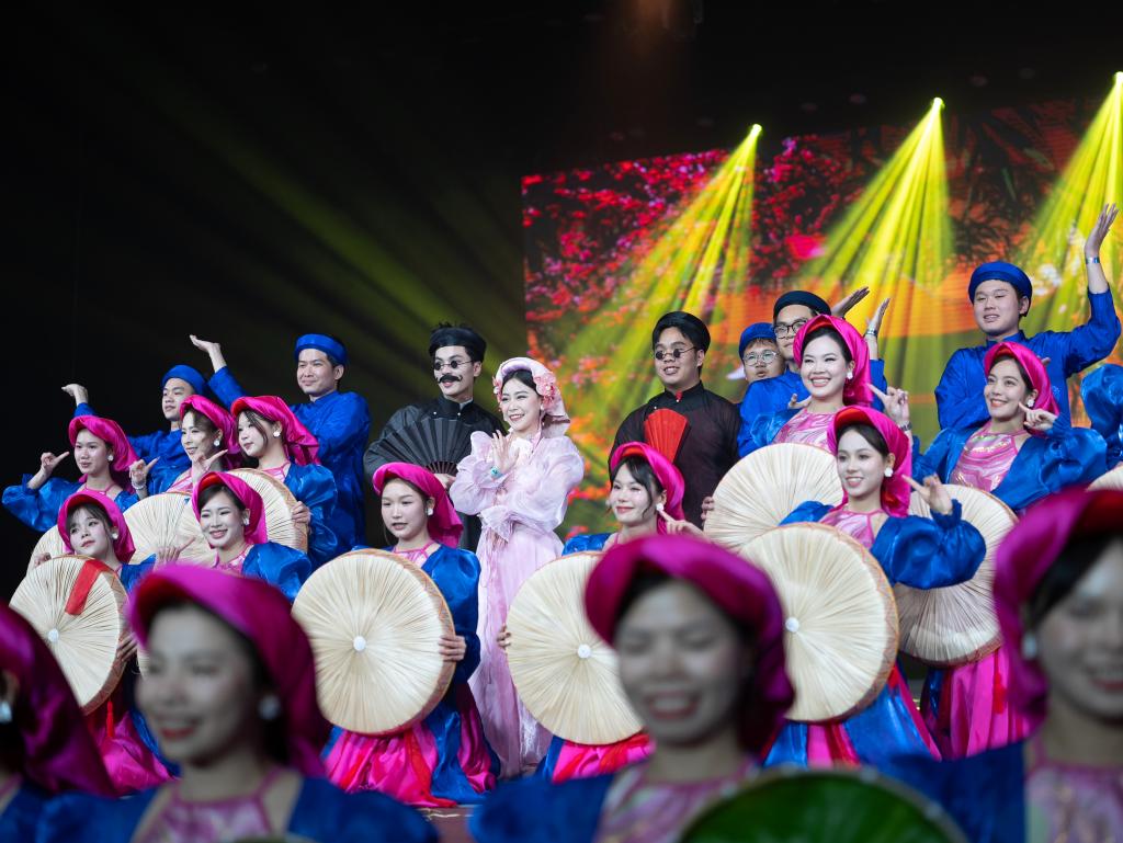 拉丁美洲舞蹈《赤焰之魂》以红黑舞衣搭配激昂节奏,舞姿炽热奔放,尽显拉美风情。越南舞蹈《北越风华》中,留学生手持荷叶盘,于轻盈舞步间传递特色零食,亲切如邻家聚会;韩国节目《韩潮燃动》以劲歌热舞引爆欢呼,场面热烈。
