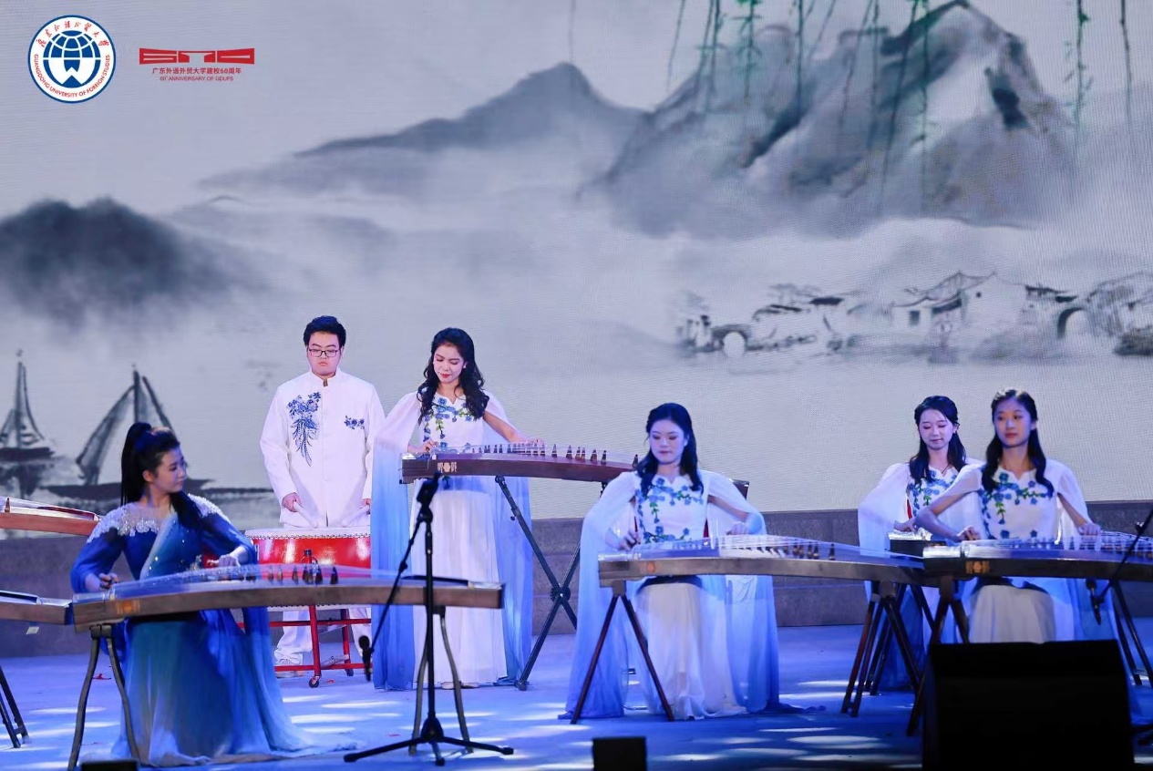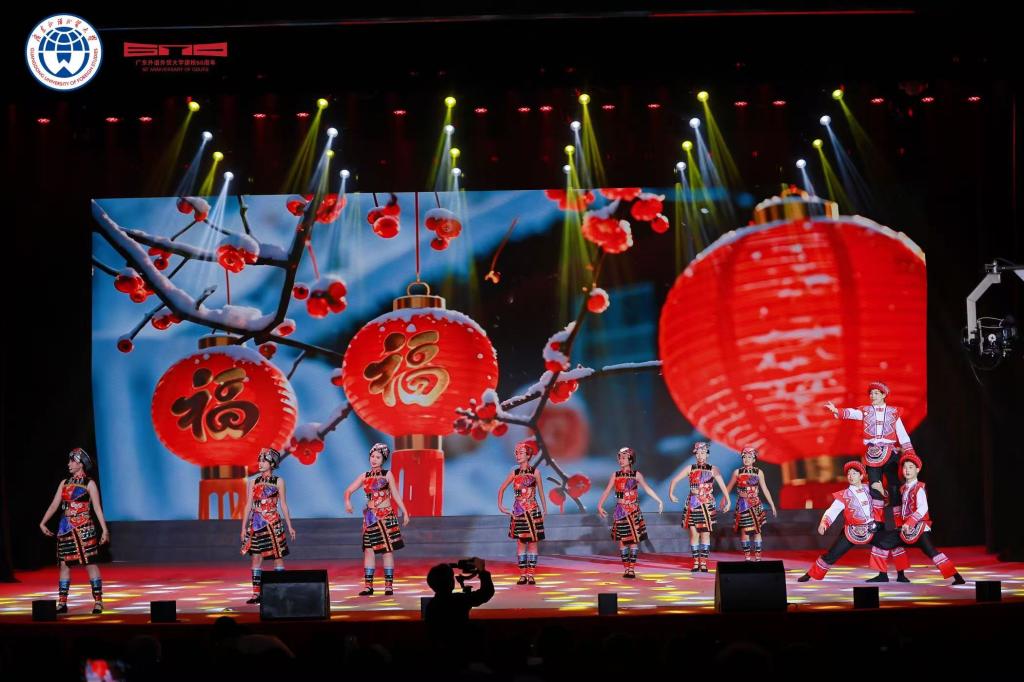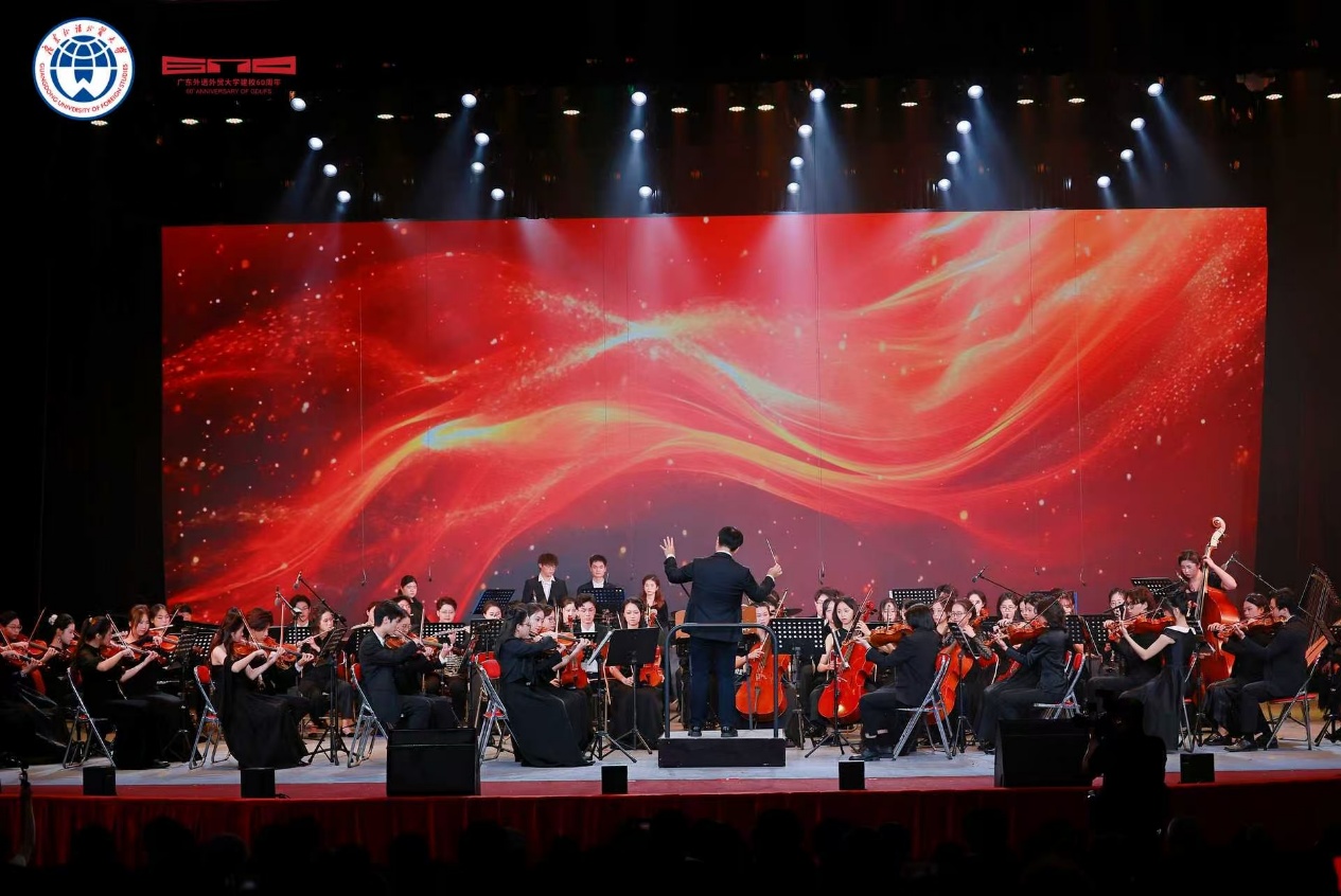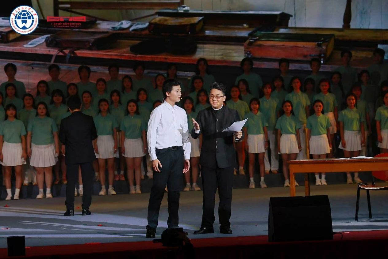 云山珠水,见证六秩峥嵘;华灯笙歌,共庆甲子荣光。整场文艺展演,将广外六十年的办学历程、精神内核与未来愿景,通过十二个节目艺术化呈现。从校史的温情回溯,到精神的赓续传承,再到未来的豪情奔赴,深刻诠释“明德尚行,学贯中西”的深刻含义。师生们满怀澎湃激情,以艺术之名,向母校献上最深情的礼赞。